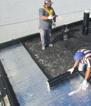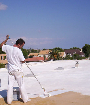 Reparación de techados acrílicos existentes. Pintar membranas asfálticas con terminación geotextil.