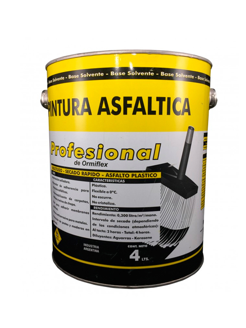 Pintura asfáltica de aplicación en frío, de base solvente. Secado rápido.